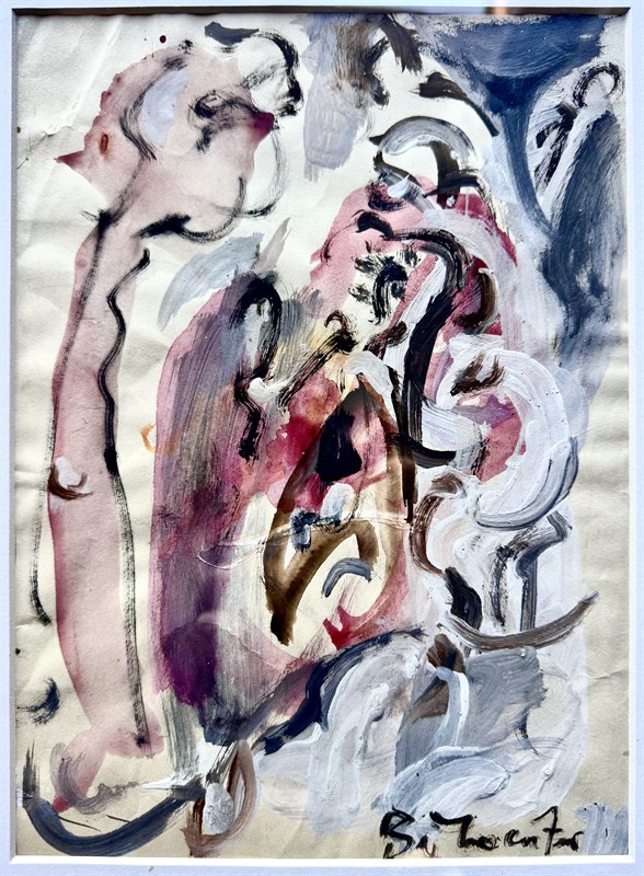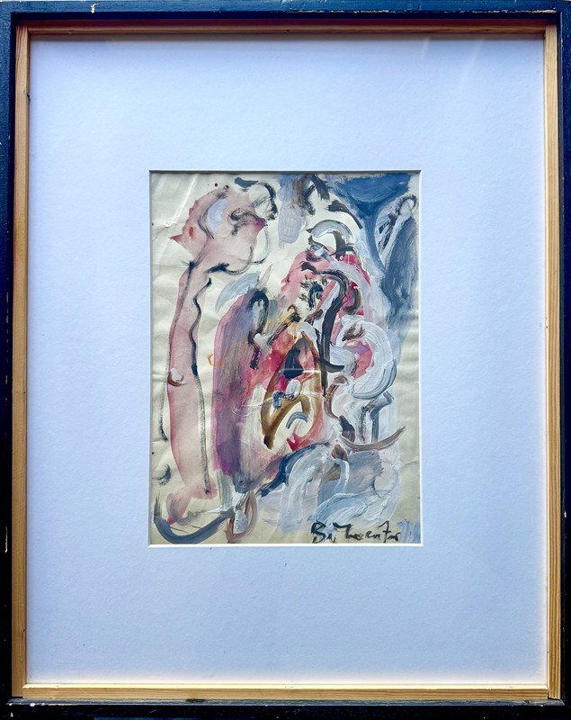 Tepmpra a akvarel na papíře o velikosti 29 x 21 cm, signováno vpravo dole “Bělocvětov” rámováno v paspartě pod sklem, celkový rozměr je 53 x 43 cm. Andrej Bělocvětov byl významným českým malířem, původním jménem Andres Belotsvetov – Theakston (1923 Praha – 1997 Praha). Po válce byl přijat na AVU a stal se žákem Vlastimila Rady a Emila Mináře, po roce však akademii, byl členem skupiny Máj 57 a vystavoval s ní do roku 1965. V 70. letech byl čestným předsedou Žižkovské avantgardy.