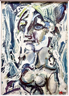 Olej a email na kartonu o velikosti malby 62 x 45 cm. Rámováno pod sklem, signováno a datováno vlevo nahoře “Bělocvětov 72”. Andrej Bělocvětov byl významným českým malířem, původním jménem Andres Belotsvetov – Theakston (1923 Praha – 1997 Praha). Po válce byl přijat na AVU a stal se žákem Vlastimila Rady a Emila Mináře, po roce však akademii, byl členem skupiny Máj 57 a vystavoval s ní do roku 1965. V 70. letech byl čestným předsedou Žižkovské avantgardy.