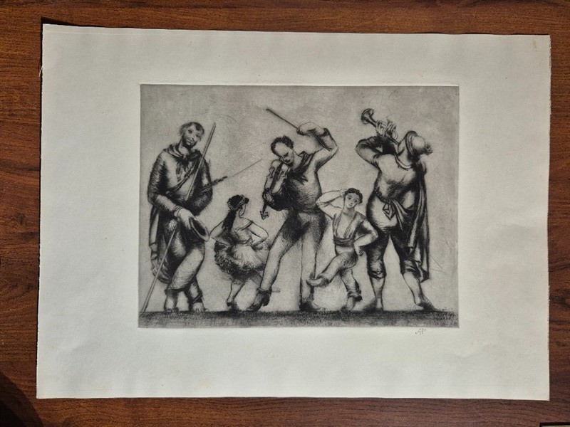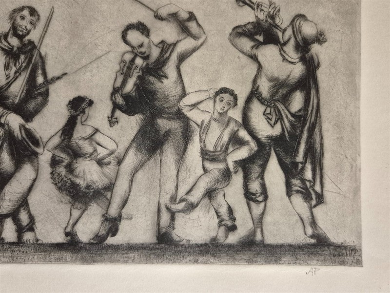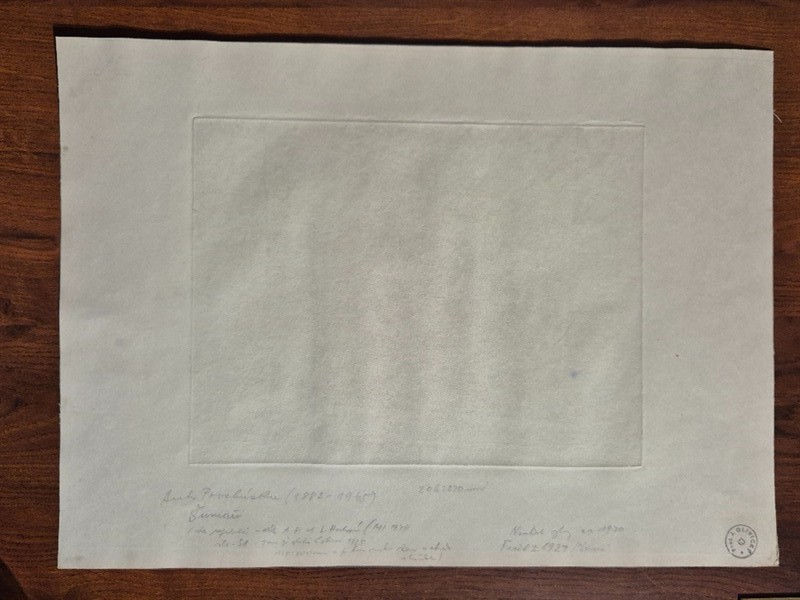 Lept od Antonína Procházky (1882-1945), malíře a skvělého grafika. Procházka proslul svými kubistickými malbami, ale nakonec dospěl ke svébytné formě novoklasicismu - oba typy jeho děl jsou sběrateli hojně vyhledávány. Nabízený lept je signovaný monogramem vpravo dole, vzadu je dobový popis a razítko. Rozměry 21 x 27 cm. Volný list.