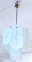 Chrom, ručně broušené bezbarvé sklo vrstvené a přejímané bílým sklem. Období a styl: art deco. Velmi zajímavý art deco lustr tvořený skládanými svislými šestihrannými skleněnými segmenty (deskami) tvořícími tvar včelích pláství. Po obvodu osm desek různé velikosti, uvnitř čtyři desky stejného rozměru. Zdobené geometrickým ručně broušeným art deco ornamentem. Odstupňovaná čtvercová chromovaná stropnice spojená tyčí s paprskovitě uspořádanými vodorovnými rameny. Vrchní osvětlení na 4 žárovky, spodní osvětlení na 1 žárovku. Ve výborném stavu. Nově elektrifikováno, funkční. Československo 1925 - 1938. Výška 130 cm, průměr 50 cm.