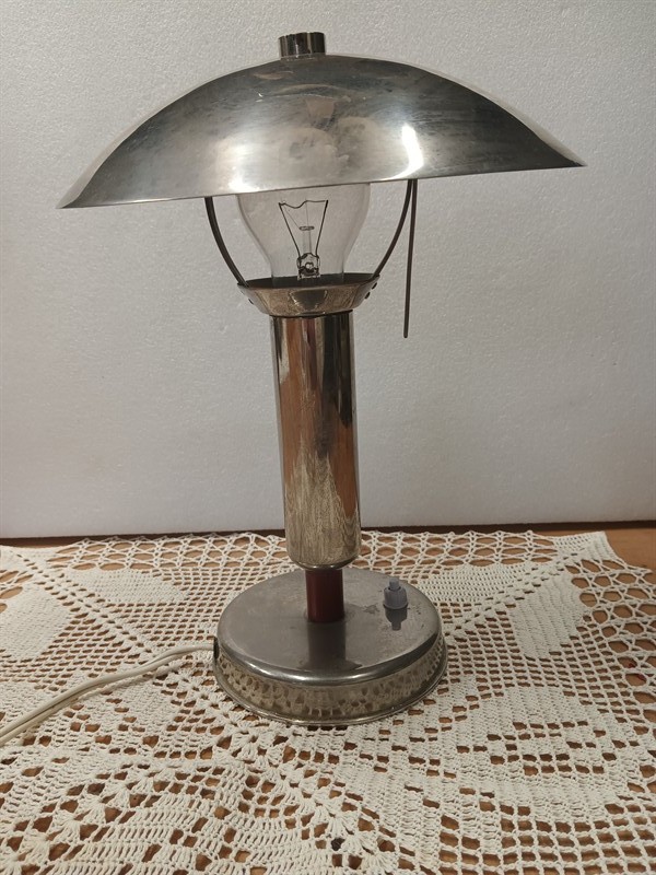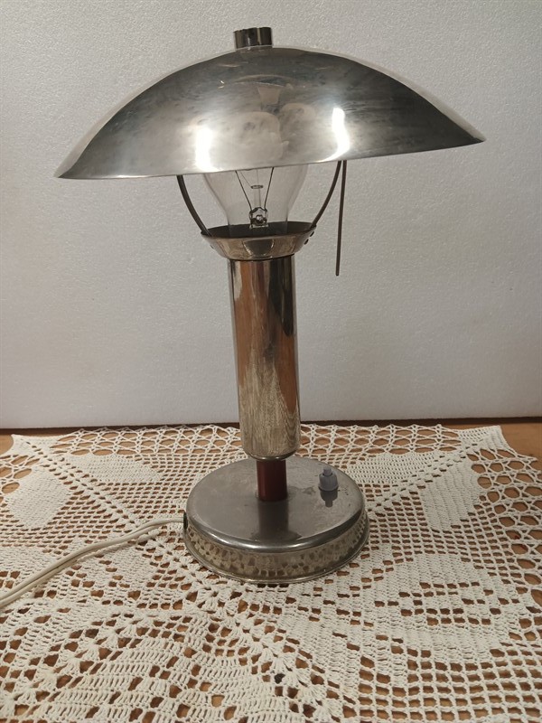 Krásná elegantní lampa z období Art deco , materiál chrom . Lampa je funkční, ve velice dobrém stavu. Výška 32 cm .
