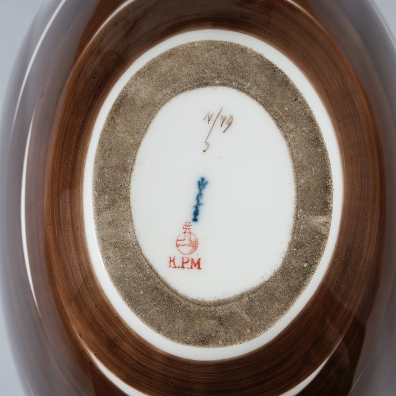 návrh Trude Petri (1906-1989) kolem r. 1936, produkce Královská porcelánka Berlín, značky výrobce, výška 21,5 cm, ručně malovaný porcelán, zřídka vídaný dekor.