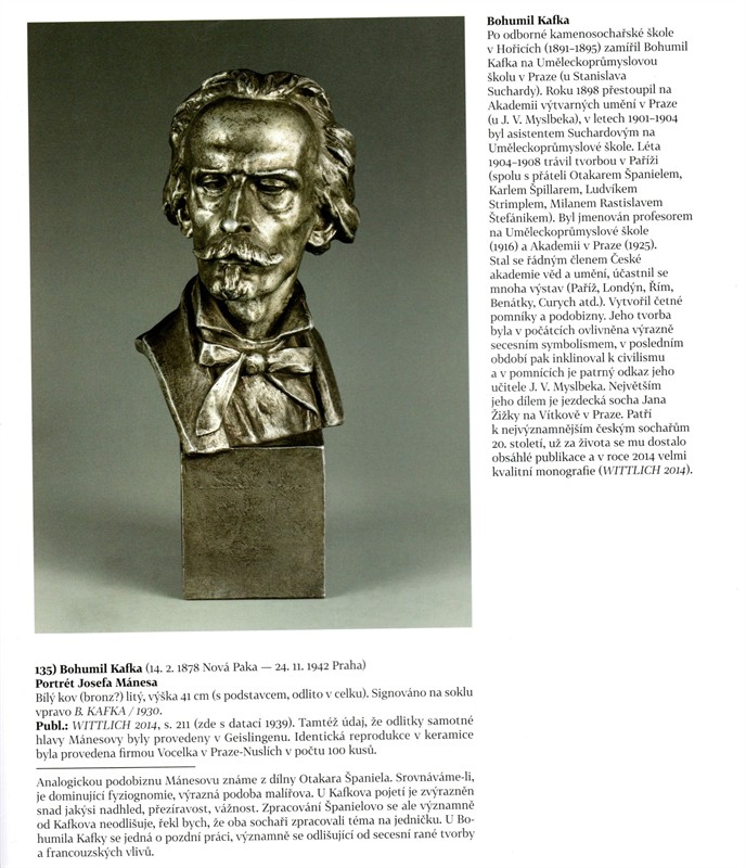 BOHUMIL KAFKA - Portrét Josefa Mánesa, velký bronz Bohumil Kafka (14. 2. 1878 Nová Paka – 24. 11. 1942 Praha) – Portrét Josefa Mánesa Bílý kov (bílý bronz?) litý, výška 41 cm (s podstavcem, odlito v celku). Signováno na soklu vpravo B. KAFKA / 1930. Perfektní stav. Vystaveno v Prácheňském muzeu v Písku 2023, publ. v katalogu k výstavě Pojďme mezi lidi. str. 53 a 217.