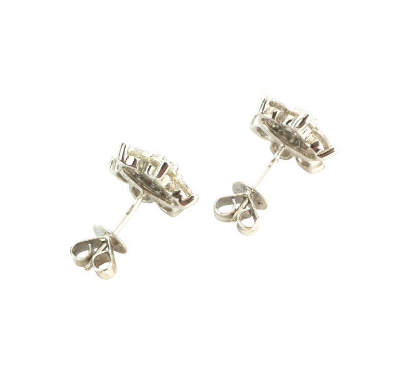 Náušnice z bílého zlata ryzosti 585/1000 zdobené zářivými brilianty celkové hmotnosti 1,20 ct (krásná barva G, čistota SI). Celková hmotnost náušnic: 3,19 g. Průměr: 1,2 cm.