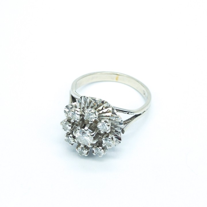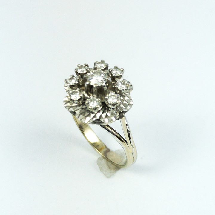 Zlatý prsten osazený přírodními diamanty kulatého briliantového brusu 0,47 ct, zlato o ryzosti 18 karátů 750/1000 o celkové hmotnosti 3,72 g, velikost prstenu 48,5 znalecký posudek o pravosti kamenů přiložen