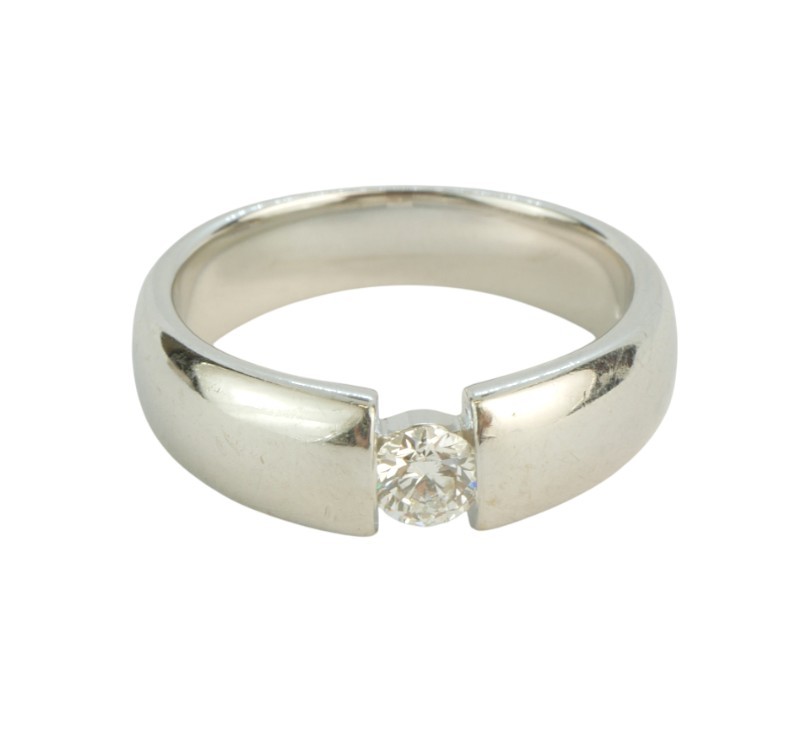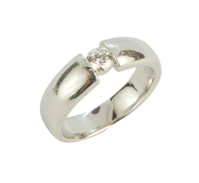 Moderní briliantový prsten se solitérním diamantem briliantového brusu 0,20 Ct, firma Christ. Zlato o ryzosti 14 karátů 585/1000 o celkové hmotnosti 5,1 g, velikost prstenu: 50. Vhodné jako zásnubní prsten.