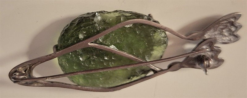 Rozměr 6,6 x 2, cm, stříbro 925/1000, puncováno platnou značkou kamzík, mistrovská značka FJ, celková hmotnost 12,1 g, vltavín – naležiště Chlum, nádherný pravidelný kámen vejčitého tvaru, nepoškozený a bez oděrek (na zadní straně ohraničené zeslabení přírodního původu) , rozměr 3,3 x 2,5 x 0,5 cm, hmotnost 19 kar., sytá zelená barva, perfektní stav