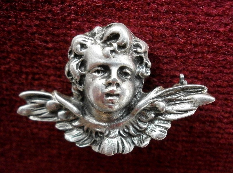 Stříbrná brož - putti. Rozměry 2,4 x 2,2 cm, stříbro 800/1000 6,66 g