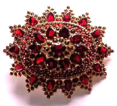Brož s českými granáty ve tvaru květu, 19. století