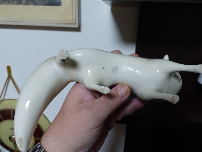 100% bez otluků, prasklin a lepení, stav podle fotek 14 x 23 x 10 cm Tuto figurku lišky vytvořil na počátku šedesátých let Jiří Černoch. Autor pracoval pro porcelánku v Duchcově nejprve externě, od konce padesátých let pak na plný úvazek. Liška je ručně dekorována šedozelenou podglazurní barvou, tahy štětcem jsou dobře znatelné. Zároveň je nadglazurně dekorována tuší. Nejen to, ale i značka Royal Dux napovídá, že figurka vznikla v polovině šedesátých let. Liška je málo obvyklá figurka, takto dekorovaná se vyskytuje ojediněle.