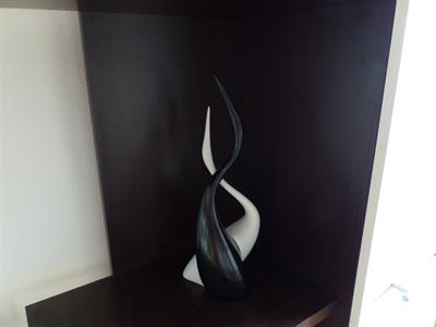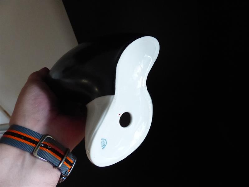 100% bez otluků, prasklin a lepení, stav podle fotek 37 x 12 x 14 cm Volavky jsou asi nejabstraktnější zvířecí plastikou Jaroslava Ježka. Jde o figurku, která sklidila zasloužený úspěch na XII. Trienále v Miláně roku 1960. Ptáci jsou prosti všech detailů, přesto je snadné je identifikovat. Z plastiky je cítit nejen spirálovitý pohyb, ale i vzájemný cit obou zobrazovaných ptáků. Zajímavé je, že díky rukodělné práci jsou u každé plastiky ptáci vůči sobě v trochu jiné poloze. V tomto případě se jedná o černobílou variantu, která je méně obvyklá, než bílá varianta. Podle značky, se dá předpokládat, že tato plastika vznikla v šedesátých letech.