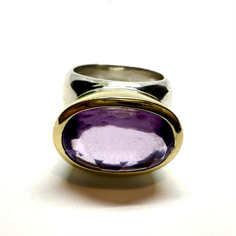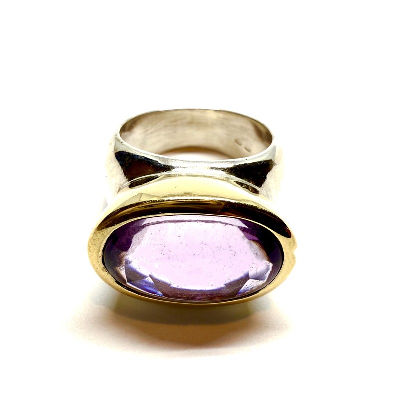 č. 179 958 Designový stříbrnozlatý prsten s velkým ametystem