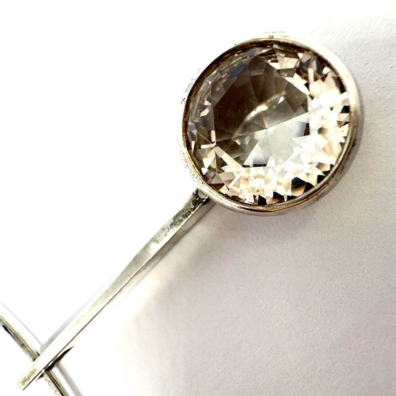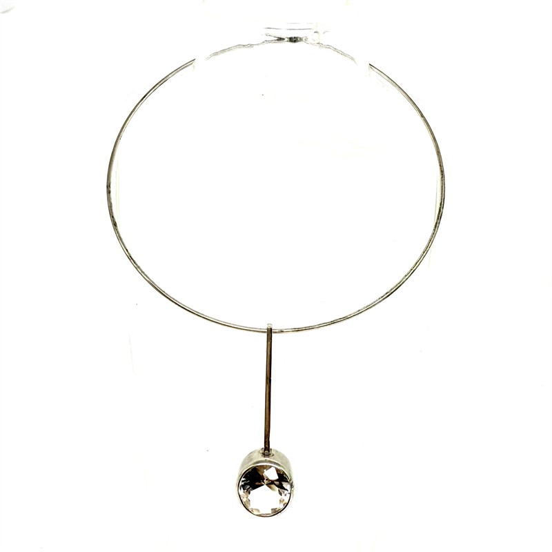 Minimalistický, designový náhrdelník s velkým horským křišťálem. Šperk byl zhotoven ze sterlingového stříbra (925/1000), o celkové váze 18,38 g. Značeno autorskou, ryzostní a puncovní značkou. Perfektní stav.