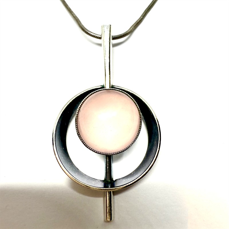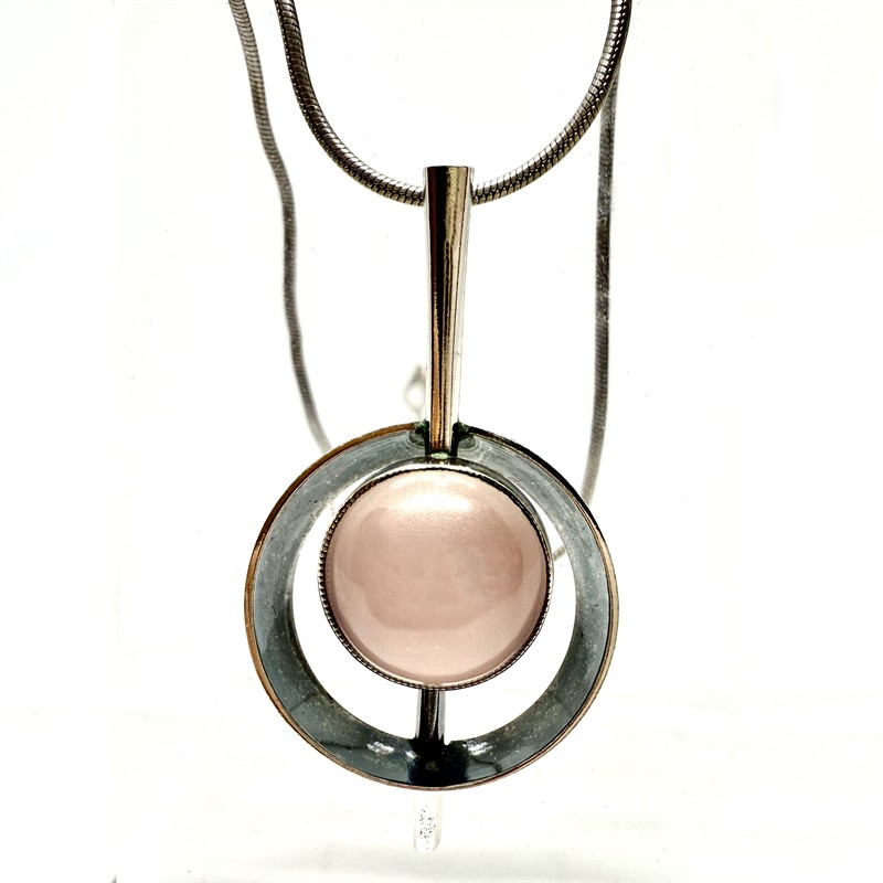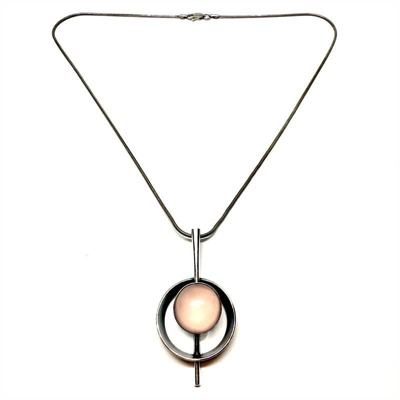 Nadčasový,desinově čistý,stříbrný náhrdelník s růženínem. Šperk byl zhotoven ze stříbra ryzsoti 935/1000,řetízek sterlingové stříbro (925/1000). Celková váha 12,88 g. Délka řetízku 45,5 cm. Rozměry závěsu 4,5 x 2 cm. Perfektní stav.