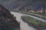 Dítětová - Vesnice u řeky Signováno viz foto. Olej na kartonu. Rozměry malba: 43 x 70 cm.