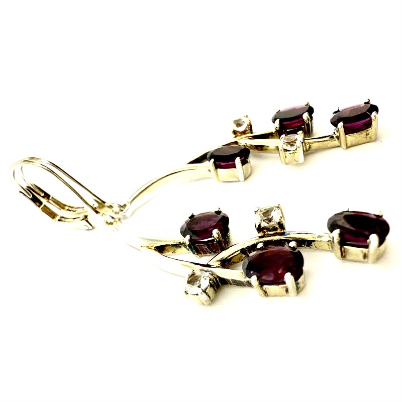 Půvabné, delší závěsné náušnice ze zlaceného stříbra. Náušnice byly zhotoveny ze sterlingového stříbra (925/1000) a jsou zdobeny fialovými kameny fazetového brusu a světlou kubickou zirkonií. Celková váha 5,90 g. Délka 5 cm. Profesionálně vyčištěno, perfektní stav.