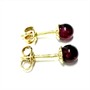 Půvabné, velmi jemné zlaté náušnice se zapínáním na puzetu. Náušnice byly zhotoveny ze 14ti karátového zlata (585/1000) a tmavě vínové kuličky almandinu. Celková váha 0,82 g. Průměr kuličky cca 3 mm. Perfektní stav.