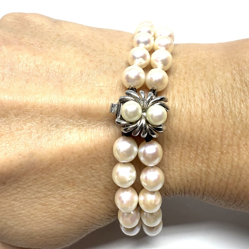 č. 180 642 Dvouřadý perlový náramek se stříbrným zapínáním
