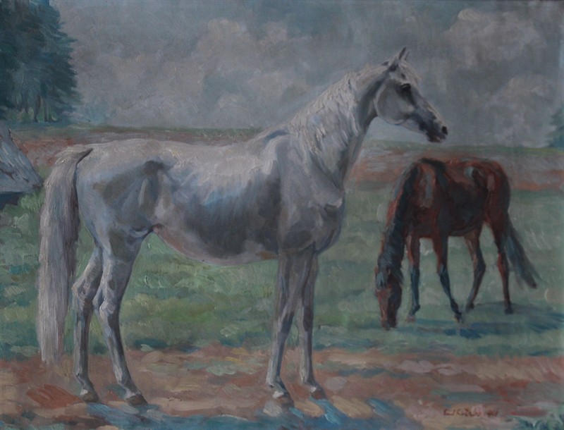 Emil Kotrba (1912 - 1983) - Koně na pastvě Signováno viz foto. Akademický malíř a grafik. Obraz je v perfektním stavu. Olej na plátně. Rozměry: 50 x 64 cm malba, 67 x 82 cm rám.