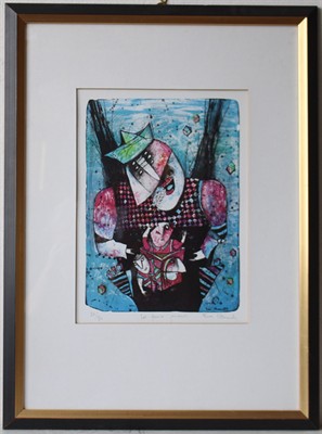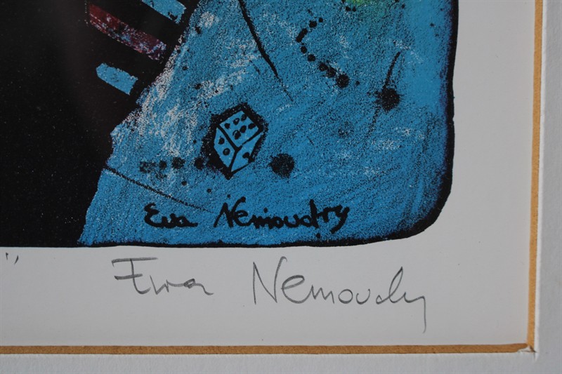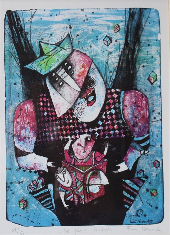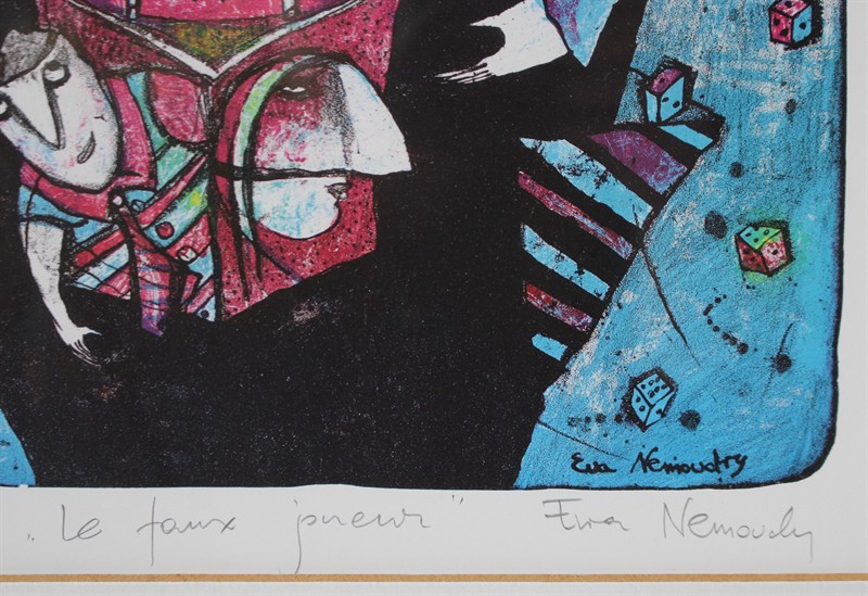 Ewa Nemoudry (*1957) - Falešný hráč  Signováno viz foto. Barevná litografie. Rozměry: 30 x 41 cm výřez, 56 x 75 cm rám.