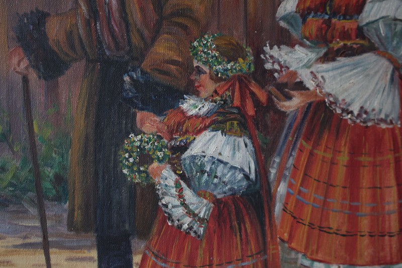 Faltus - Slovácký námět  Signováno viz foto. Olej na plátně. Rozměry malba: 70 x 100 cm.