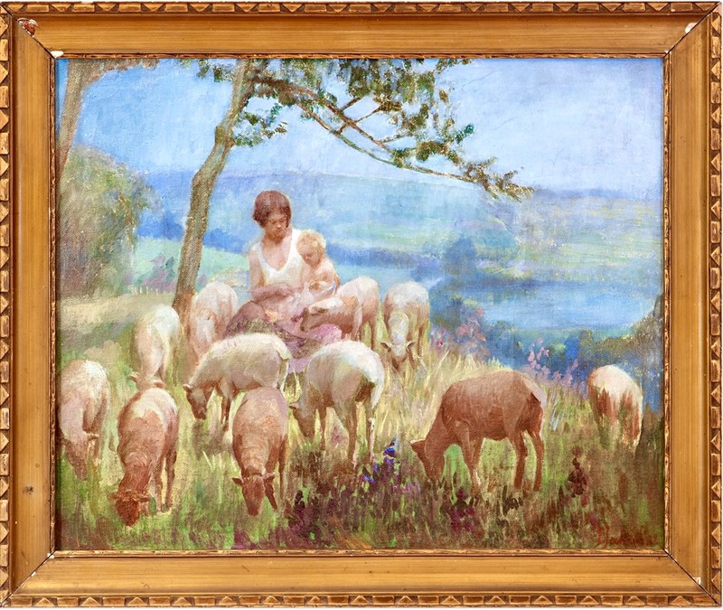 Olej na plátně o velikosti 45 x 55 cm, signováno a datováno vpravo dole “F.Jakub 14” rámováno v původním dobovém rámu. František Jakub (1975-1940) byl český akademický malíř figurálních motivů, portrétů a krajin. Studoval na AVU v Praze u prof. Pirnera a Hynaise. Vystavoval v Rudolfinu s Krasoumnou jednotou, na v Bienále v Benátkách a j. Byl členem JUV. Zastoupen je mimo jiné ve sbírkách NG v Praze.