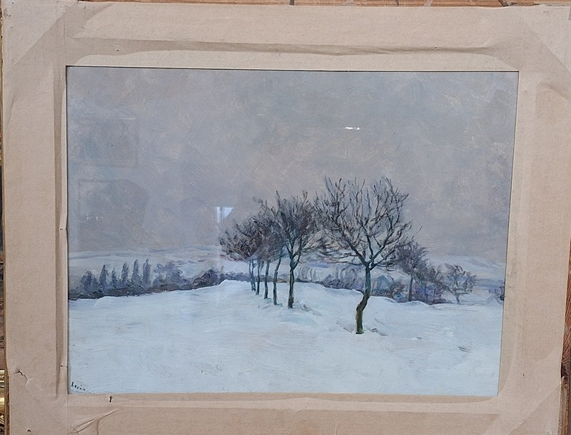 Oboustranný obraz Františka Kavána. Olej na kartonu 40x52 xm. Oba obrazy jsou v soupisu díla Františka Kavána.