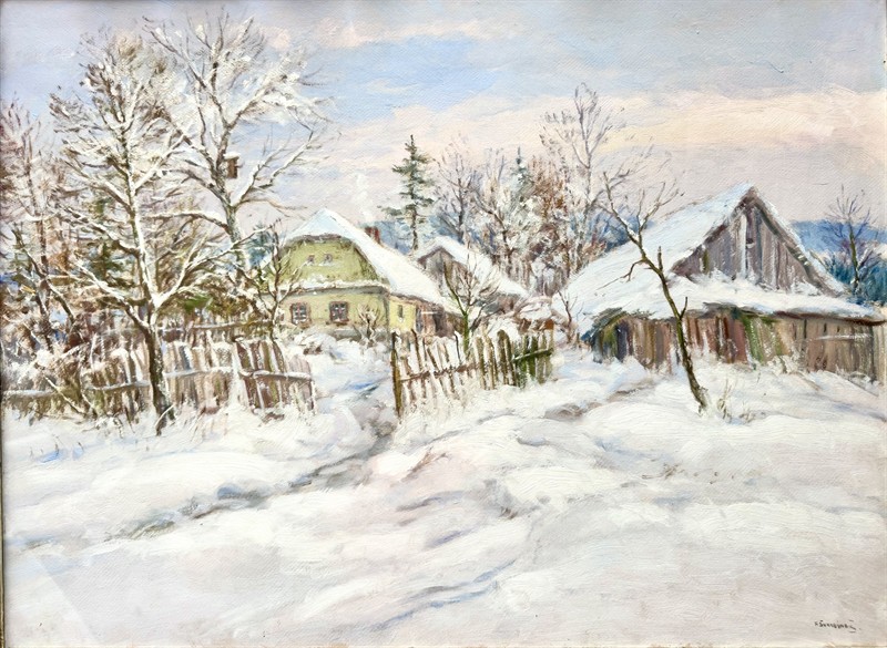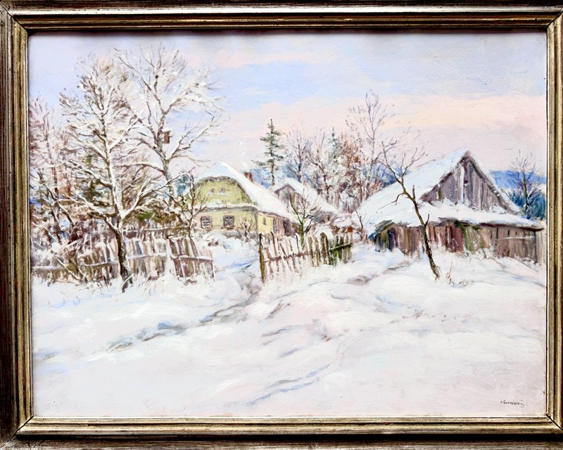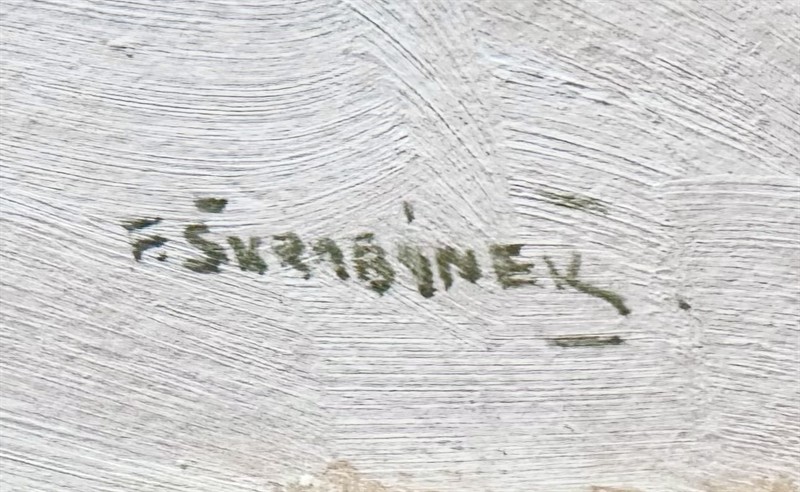 Krásný olej na lepence o velikosti 50 x 66 cm. Signováno vpravo dole. Rámováno pod sklem. Obraz je v bezvadném stavu. František Škrabánek (1901-1974) byl oblíbený český malíř krajin, především Vysočiny, je považován za následovníka Františka Kavána, žák Aloise Kalvody a Ferd. Engelmüllera, člen Spolku Marold.