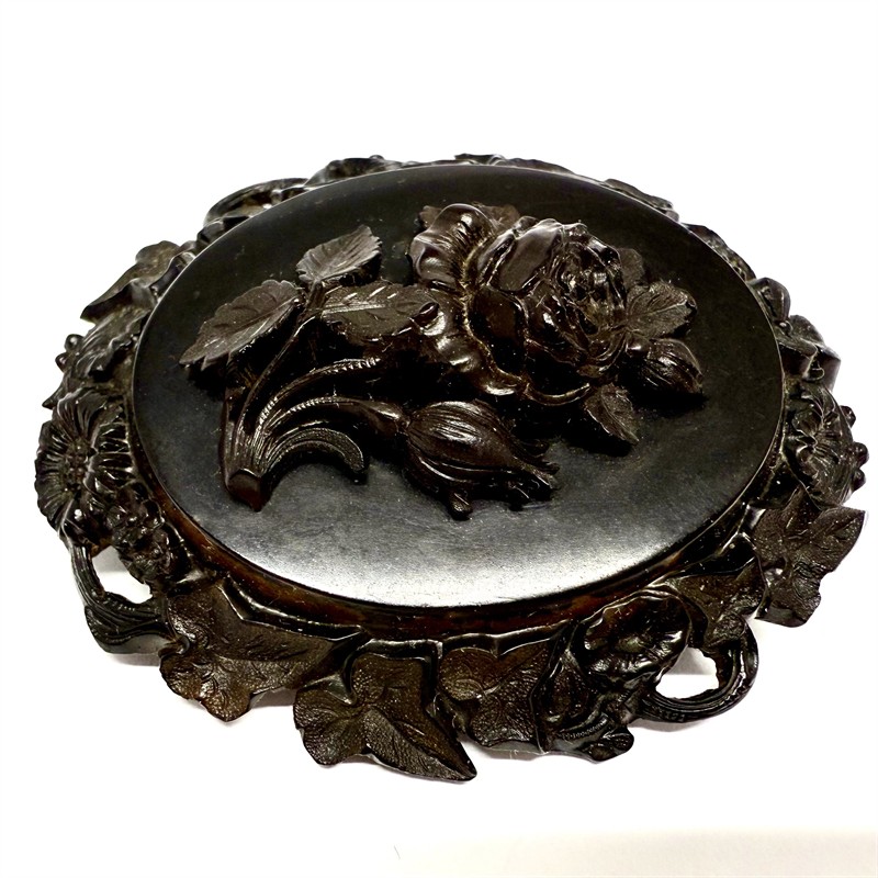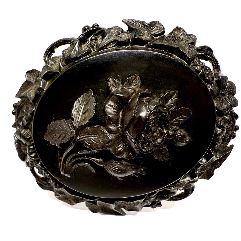 č. 179 185 Gagátová brož s plastickým motivem růže