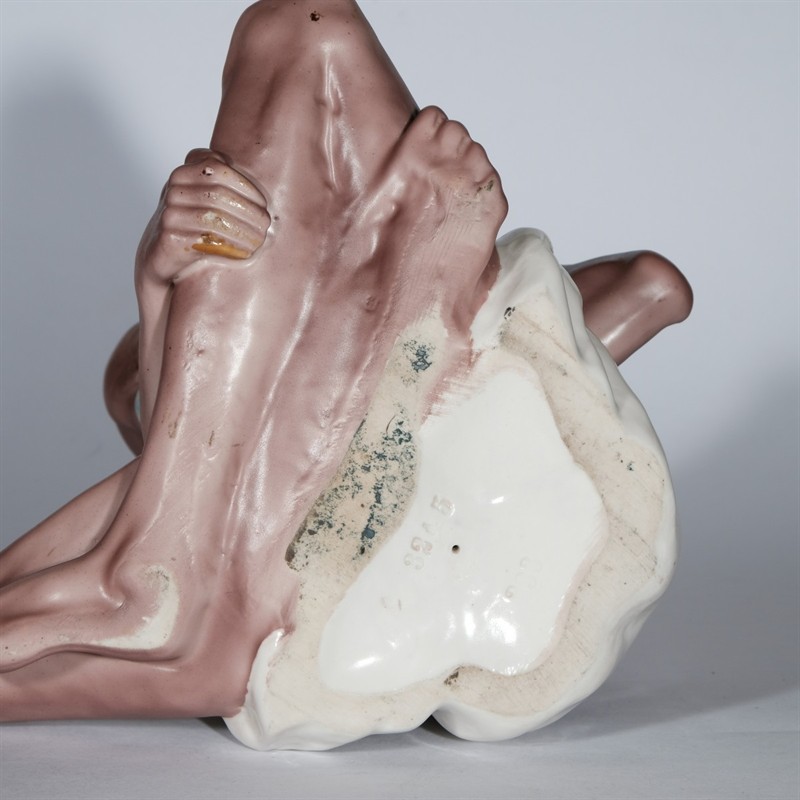 návrh asi 30. léta, produkce porcelánka Duchcov, tlačené modelové číslo 3245, výška 22 cm, dekorovaný porcelán. Pozn.: Zřídka vídaná varianta barvy tohoto modelu.