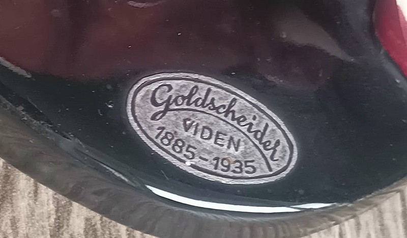 Vyrobeno 1935. Výška 31 cm. Nalepen orig. štítek Goldscheider 1885-1935. Nepoškozeno, zaručený originál.