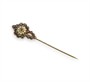 Jehlice do kravaty vyrobená z tombaku, zdobená českými granáty a perličkami. V původní etuji. Délka 8 cm. Průměr hlavy 1,8 cm. Celková hmotnost 4,18 g.