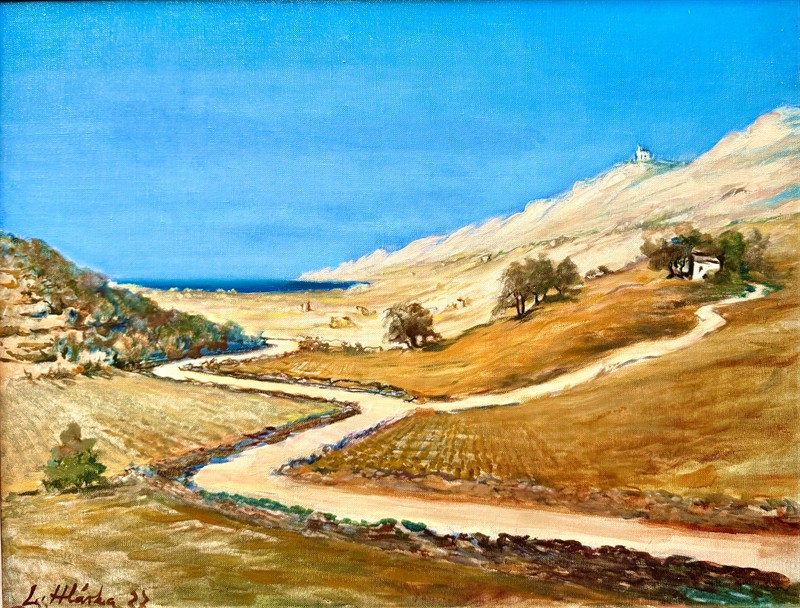 Ladislav Hlávka (nar.1899), malíř krajinář, především krajin ze Středomoří, žák pražské akademie výtvarného umění u prof. Nechleby a Švabinského. Olej na plátně o velikosti 52 x 65 cm, signováno a datováno s popisem místa vlevo dole “L.Hlávka 27 Ráb”. Rámováno, celkový rozměr 59 x 74 cm.