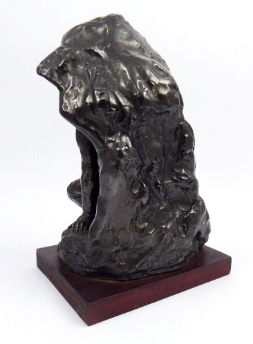 Glazovaná keramika s listrem s výrazným metalickým efektem, dřevo. Pravděpodobný autor: Vojtěch Zeilman (nar. 1896) spolupracující s RAKO, Rakovník. Výrobce: RAKO, Rakovník. Keramická figura horníka držícího v pravé ruce kahan a pohybujícího se v nízkém a úzkém prostoru uhelné sloje. Listr, jenž zajišťuje výrazný metalický efekt, umocňuje dojem z ponuré tmy v podzemí dolu. Na obdélném nízkém podstavci z hnědého lakovaného dřeva. Československo, Rakovník 1925 - 1955. Výška 31 cm, rozměr podstavce 19,5 cm x 15 cm.