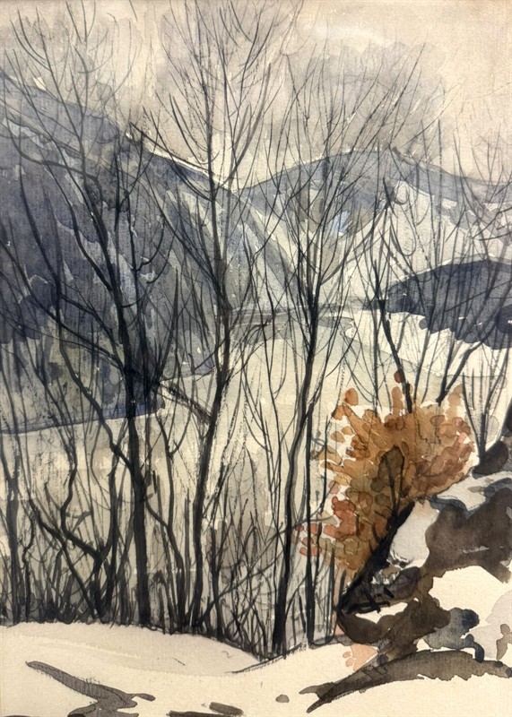 Imro Weiner Kráľ, Zimní krajina, akvarel
