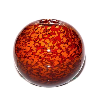 návrh 1975 Ivo Burian (1939-2016), provedení ÚUŘ sklárna Škrdlovice, model č. 7525, původní nálepka výrobce, výška 12 cm, sklo čiré s vtavenými barevnými broky, přesklívané sklem čirým, foukané do formy. Lit.: Vzorové knihy sklárny Škrdlovice.
