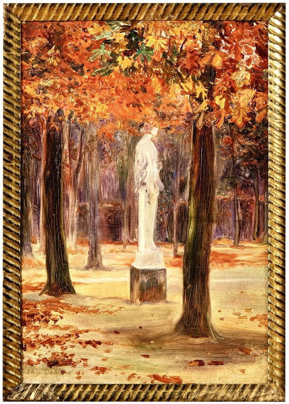 Olej na plátně o velikosti malby 55 x 38 cm, rámováno v dobovém secesním rámu, signováno vlevo dole. Jan Dědina (1870–1955) byl významným českým malířem 1. čtvrtiny 20. století, ceněno je zejména jeho pařížské období. Studoval na AVU v Praze u prof. Pirnera a Myslbeka, následně uprchl do Paříže, kde se stal uznávaným malířem, stýkal se také s Alfonsem Muchou a přes něj se sochaři Augustem Rodinem a Emilem Antoinem Bourdellem, jemuž pomohl zorganizovat pražskou výstavu v roce 1909. Zastoupen je ve sbírkách Museé du Louvre, Paříž (Paris) a Ng v Praze.