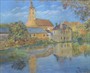 Pastel na papíru 40 cm x 50 cm. Signováno vpravo dole s datací 1913 nebo 1917. Autor: Jan Jáchym (1874-1956). Pohled na římskokatolický Kostel Nejsvětější Trojice v maďarském Gyulu odrážející se na vodní hladině. Tento kostel je jednou z nejvýznamnějších barokních památek v Maďarsku. Jeho stavba byla financována slavným rodem Esterházyů. Stříbrný patinovaný rám se strukturovaným povrchem a sklem. Maďarsko, Gyula, rok 1913 nebo rok 1917. Celkový rozměr s rámem 47 cm x 57 cm.