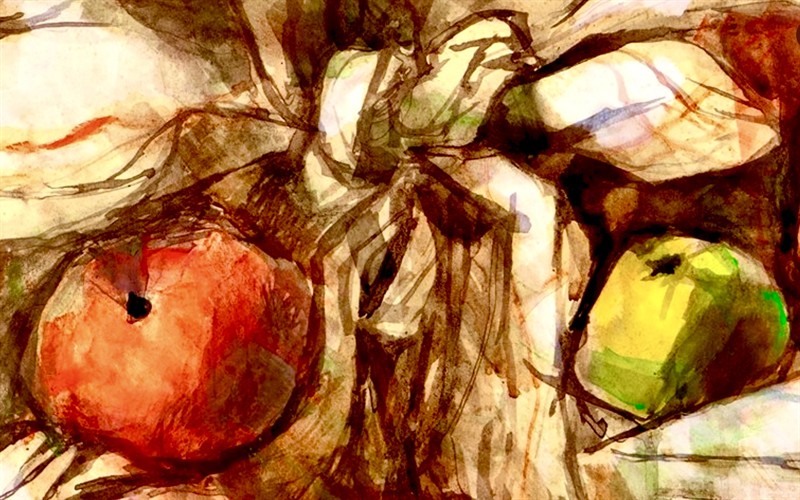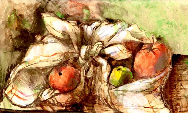 Jan Sládek: Zátiší s jablky (vyst.na výstavě KVU Aleš)