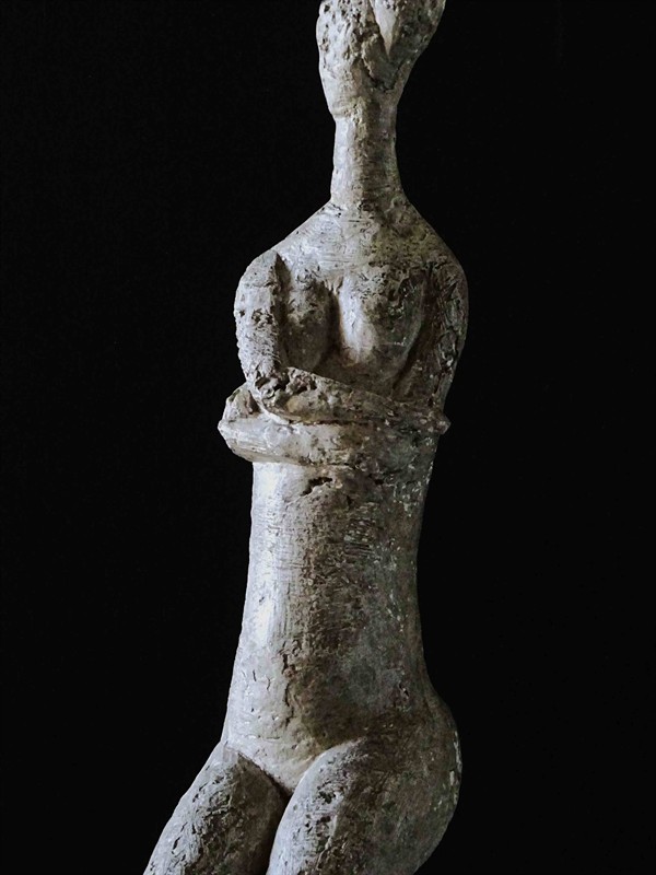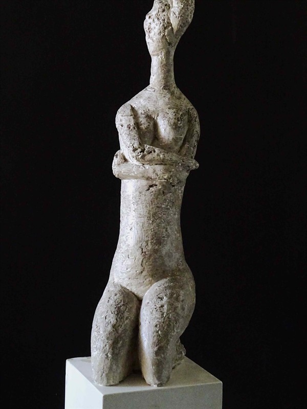 stará sádrová plastika od sochařky Věry Janouškové, drobné oděrky, soška byla v minulosti restaurovaná v oblasti krku, jinak v dobrém stavu, výška 49 cm