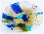 unikát, raná autorská práce sklářského výtvarníka Jaroslava Matouše (1941-2018), neznačeno, průměr 35 cm, malované čiré sklo protkané kovovými pruty, spékané a hutně tvarované, drobná vlasová prasklinka z pnutí. Prov.: Pochází z pozůstalosti autorova bratra.