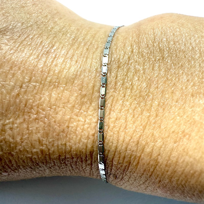 Jemný, půvabný náramek. Šperk byl vyroben z bílého zlata ryzosti 585/1000. Váha 1,05 g. Značeno ryzostní, autorskou a puncovní značkou. Délka 18 cm. Profesionálně vyčištěno zlatníkem. Výborný stav.