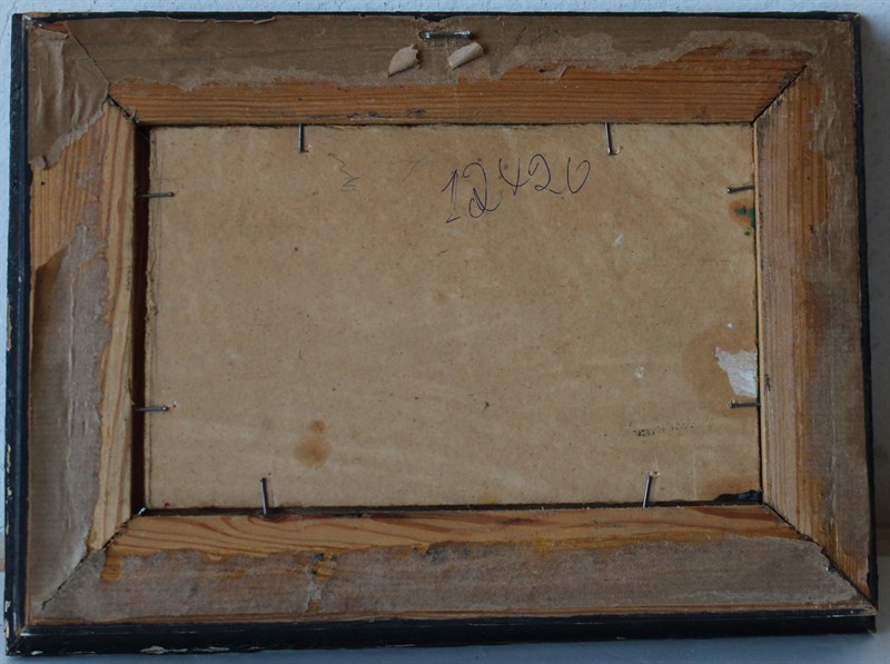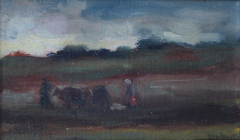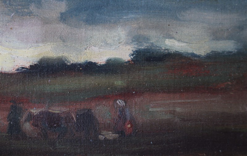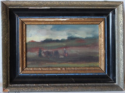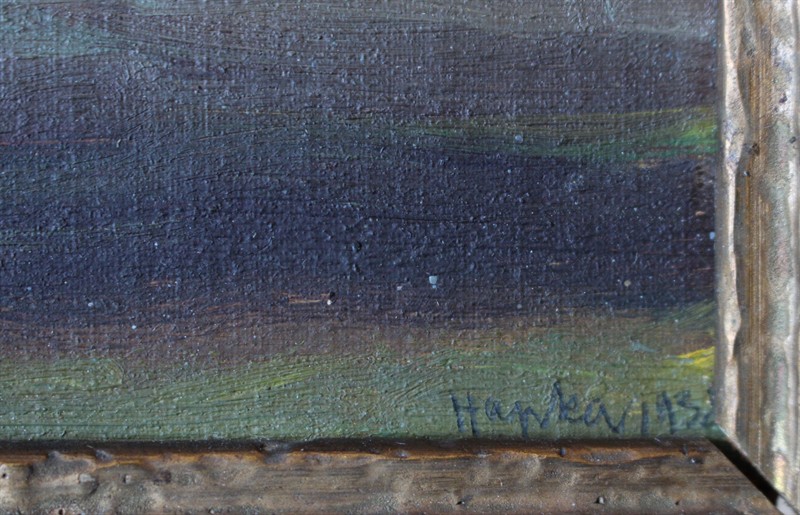 Josef Hapka (1912 - 1987) - Práce na poli Signováno viz foto. Olej na plátně, fixováno na kartonu. Rozměry malba: 12 x 20 cm.
