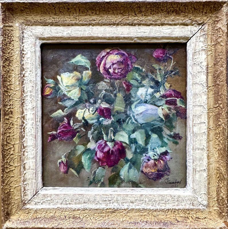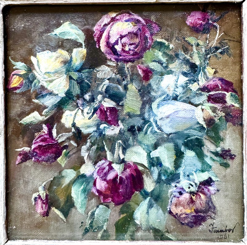 Krásný olej na plátně fixovaný na kartonu v původní m stavu, adjustaci a zalepení. Rámováno pod sklem, signováno a datováno vpravo dole “Jambor 1961”. Velikost 16 x 16 cm, 21,5 x 21 cm včetně rámu. Josef Jambor (1887-1964) je jedním z nejoblíbenějších krajinářů 20. století, nazýván také “malíř Vysočiny”, studoval na AVU v Praze u prof. Loukoty, Bukovace a Švabinského.