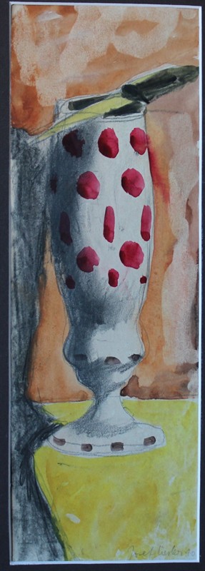 Josef Liesler (1912 - 2005) Zátiší s pohárem - 1940 Signováno viz foto. Malíř, grafik a profesor v Praze. Žák vysoké školy architektury a pozemního stavitelství v Praze (odb. prof. kreslení), kde byl žákem prof. O. Blažíčka, J. Sejpky a C. Boudy. Kvaš na silném papíru. Rozměry: 12 x 33 cm malba, 40 x 55 cm rám