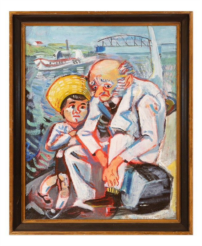 Josef Novák olej na plátně o velikosti malby 77 x 54 cm, rámováno signováno na rubu. Josef Novák * 7. 11. 1902, † 2. 7. 1987, ilustrátor, typograf, kurátor, malíř, fotograf, pedagog, grafik. Člen Spolku Mánes, významná osobnost čsl. výtvarné scény 20.století.
