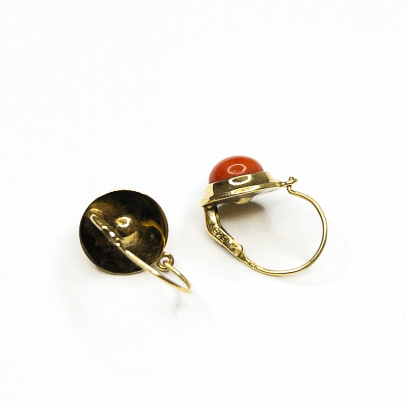 Zlaté náušnice s červeným korálem, zlato o ryzosti 14 karátů 585/1000 o celkové hmotnosti 1,80 g, délka náušnic 1,2 cm