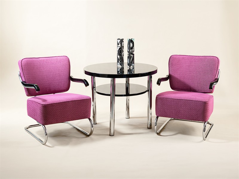 KŘESLA FUNKCIONALISMUS Datování-20-30. léta 20. století. Původ-Čechy. Materiál-trubková ocel, bukové područky, nové čalounění, nově chromováno. Rozměry-v82 š70 h90. Doprava-zajištění po dohodě