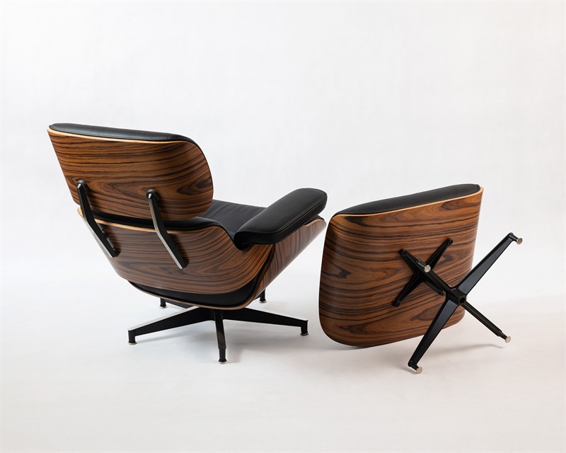 KŘESLO CHARLES & RAY EAMES..S PODNOŽKOU. ,,HERMAN MILLER,, Datování-50.léta 20.století..současnost. Design-Charles & Ray Eames Materiál-dřevěný korpus, kůže, kovový kříž. Barva-černá. Rozměry-v 85. š 85. h 85-90. v 43. š 62. h 55. Poznámka-ikona v dějinách designu
