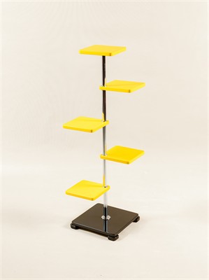 KVĚTINOVÝ ETAŽER-BAUHAUS Období-Funkcionalismus Datování-1930 Původ-Čechy Rozměry-v114. š38. Materiál-chromovaná trubka, dřevěné podesty. Stav-restaurováno. TOP model. Doručení-zajistíme po předchozí dohodě.